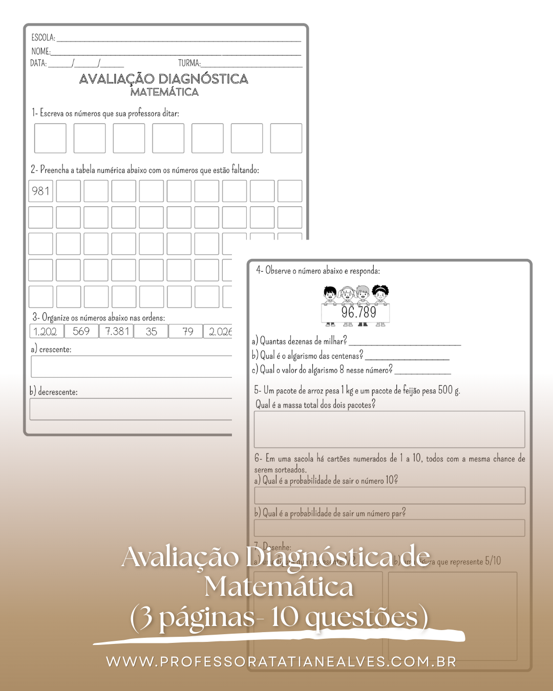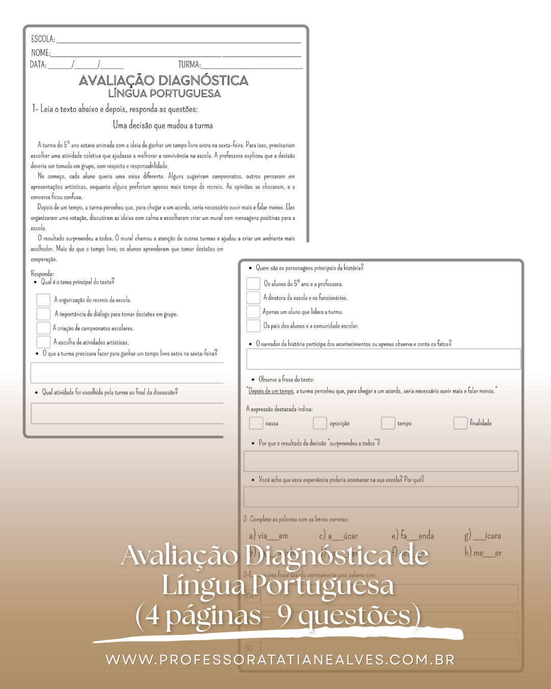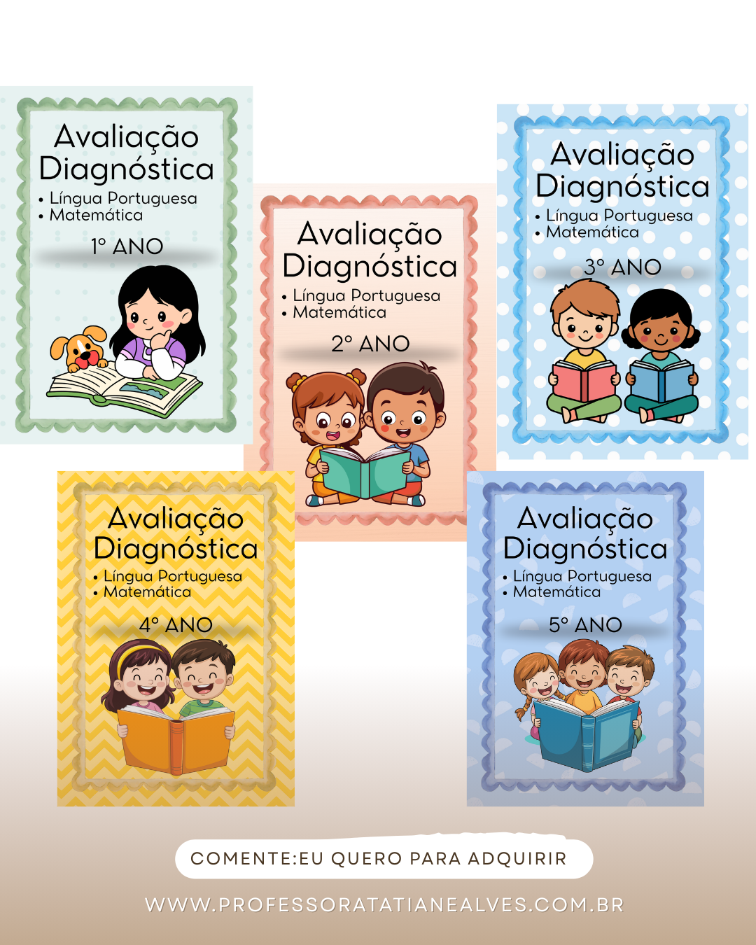 📘 O kit contém avaliações diagnósticas do 1º ao 5º ano, com: