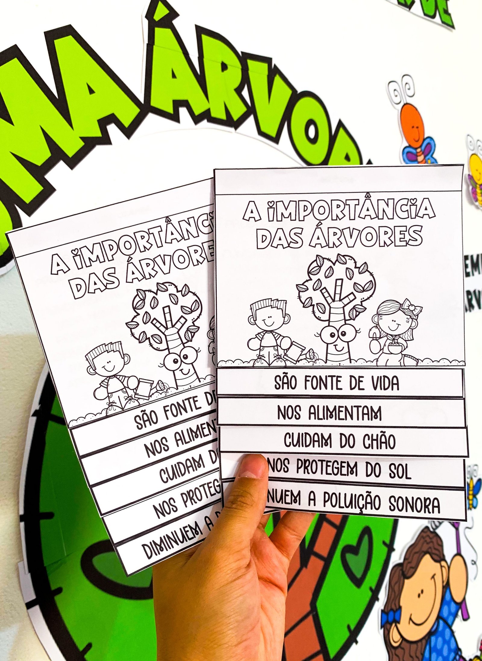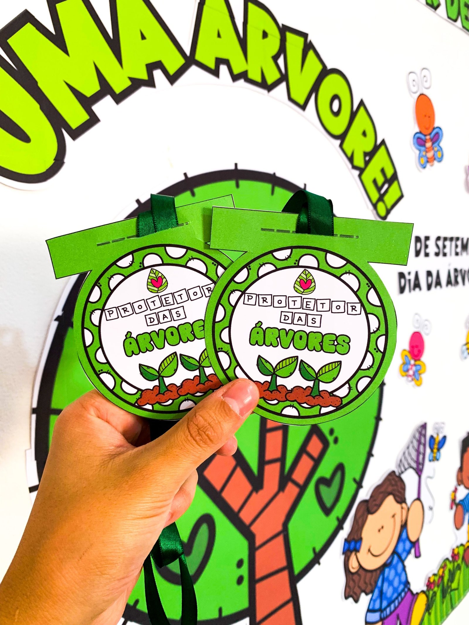 Kit Dia da Árvore para trabalhar o tema com turmas de Educação Infantil e séries iniciais do Ensino Fundamental. Arquivo em PDF pronto para impressão. O arquivo vai com os seguintes itens: -Painel já ampliado -Moldura para foto -Coroa na opção colorida e para colorir -Flipbook para colorir -Quebra-cabeça com sacolinha -Luva Partes da Árvore -Livrinho zine para colorir Certificado Protetor das Árvores -5 páginas de atividades para colorir -Medalha – Envelope para semente VEJA TAMBÉM: PAINEL REUNIÃO DE PAIS